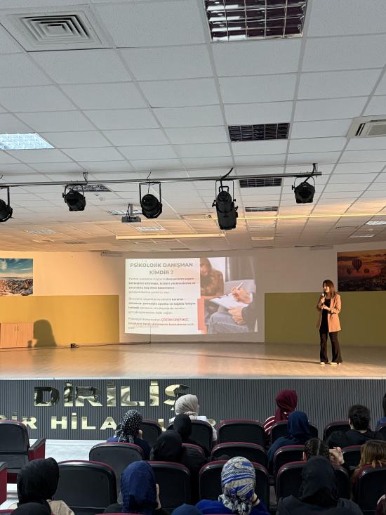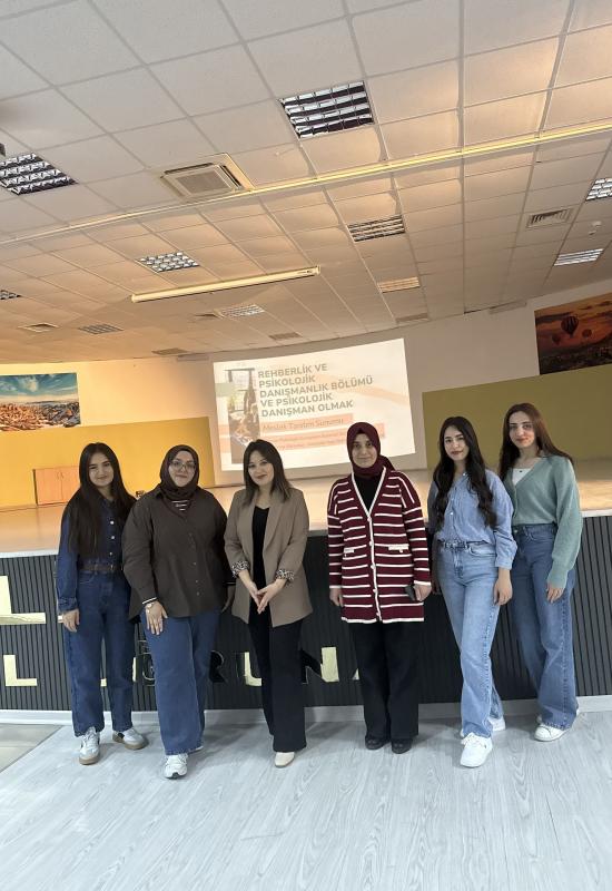 Anabilim Dalımız öğretim elemanı Arş. Gör. Ayşenaz Ekin Duman, Nevşehir Diriliş Kız Anadolu İmam Hatip Lisesi tarafından düzenlenen "Kariyer ve Meslek Tanıtım Günleri" kapsamında seminer verdi. 27.03.2026 tarihinde gerçekleştirilen seminerde, sınava hazırlanan öğrencilere Rehberlik ve Psikolojik Danışmanlık Bölümü ve Psikolojik Danışmanlık mesleği hakkında bilgilendirmelerde bulunuldu. Öğrencilerle etkileşim halinde ilerleyen seminerde, psikolojik danışmanların görev ve sorumlulukları, üniversite eğitimi, bölümde yer alan temel dersler, psikolojik danışmanların sahip olması beklenen özellikler, mezuniyet sonrası çalışma alanları, istihdam oranları ve psikoloji-pdr bölümlerinin farklarına değinildi. Seminer, öğrencilerin sorularının cevaplandırılmasıyla sona erdi.